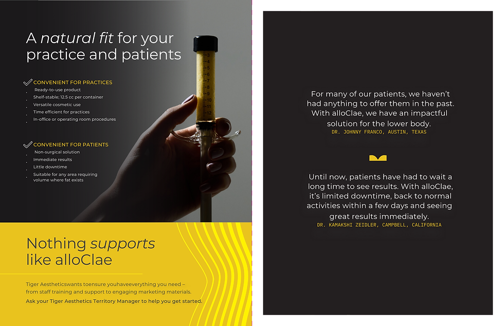 Tiger Aesthetics Medical LLC, the company behind the product, is a subsidiary of Tiger Biosciences, a Pennsylvania based firm specializing in regenerative medicine. The development of alloClae® reflects the application of tissue engineering principles to the aesthetics industry, which is increasingly focused on regenerative and biologically harmonious solutions.